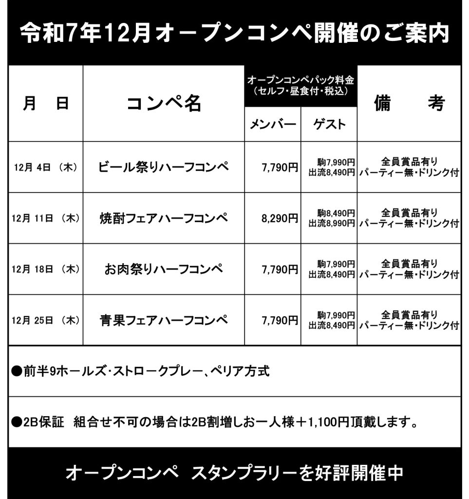※2025年12月のオープンコンペ予定表は下の赤字をクリックするとご確認頂けます。