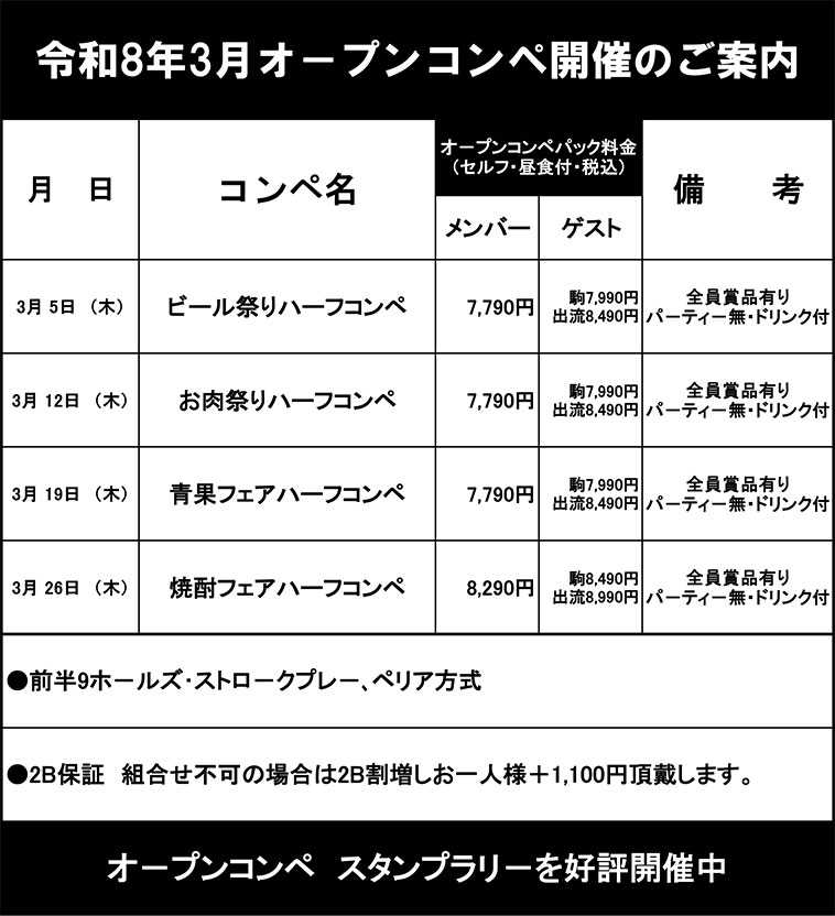 ※2026年3月のオープンコンペ予定表は下の赤字をクリックするとご確認頂けます。